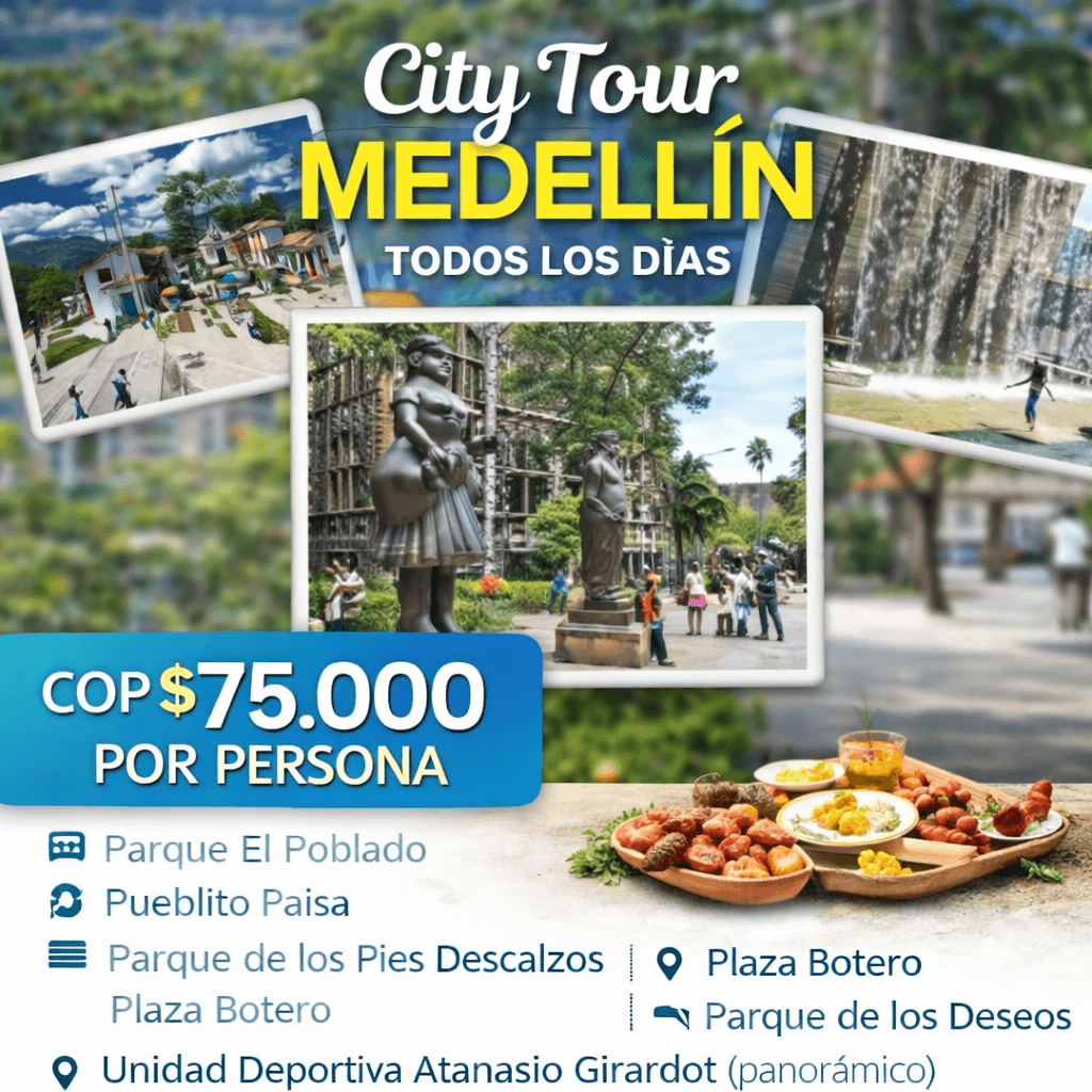 marzo 17, 2026Vive una experiencia única recorriendo los sitios más representativos de Medellín en un tour diseñado para conocer su esencia cultural, social y turística. Durante el recorrido visitarás espacios icónicos que reflejan la transformación de la ciudad, combinando historia, arte urbano, naturaleza y tradición paisa.
